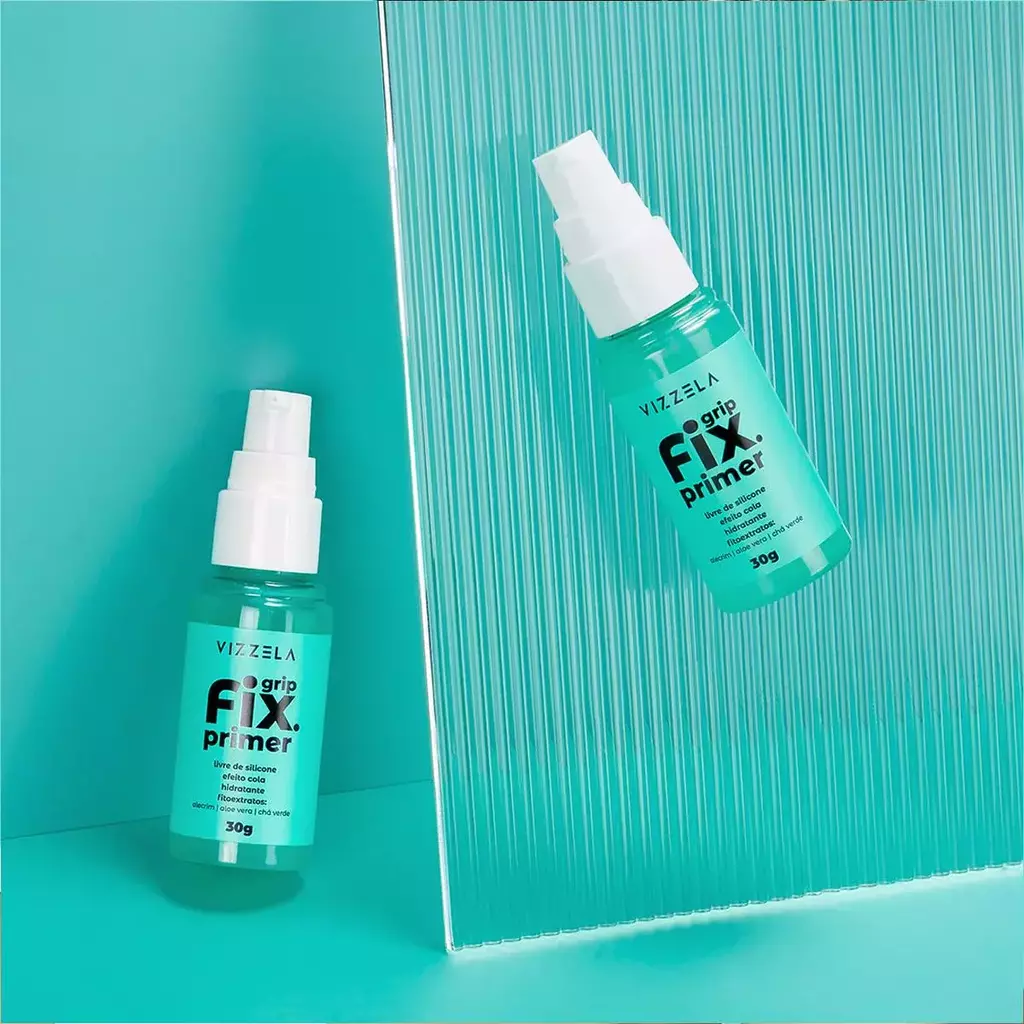 O Grip Fix Primer Vizzela é um primer com efeito cola, desenvolvido com uma tecnologia de adesão que garante alta fixação da maquiagem na pele.